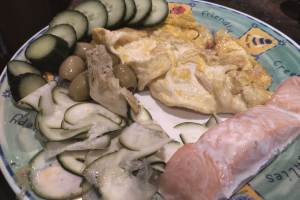 Salad – increase nutrition more with peeled slices of courgette, cucumber or other salad items available in fridge.
